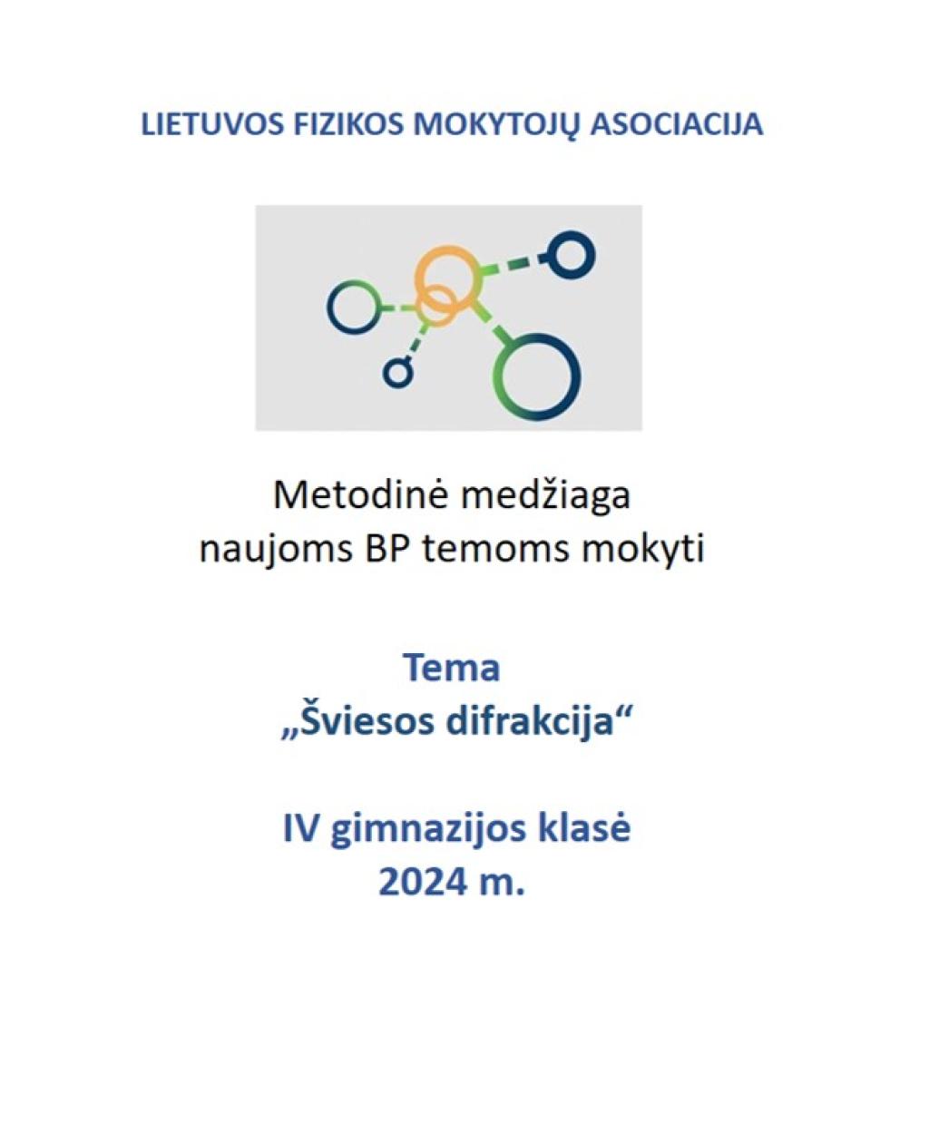 Lietuvos fizikos mokytojų asociacijos metodinė medžiaga (IV gimnazijos klasė), naujoms BP temoms mokyti. Tema „Šviesos difrakcija“